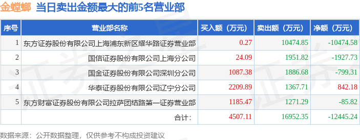 证券之星消息,沪深交易所2026年4月23日公布的交易公开信息显示,金螳螂(002081)因日涨幅偏离值达到7%的前5只证券登上龙虎榜。此次是近5个交易日内第3次上榜。