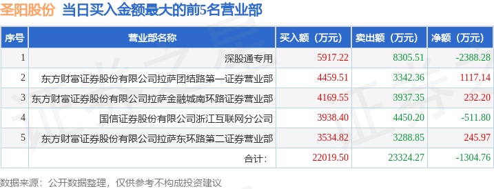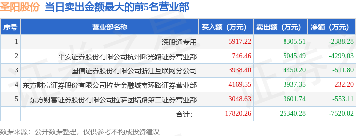 证券之星消息,沪深交易所2026年4月23日公布的交易公开信息显示,圣阳股份(002580)因日换手率达到20%的前5只证券登上龙虎榜。此次是近5个交易日内第5次上榜。
