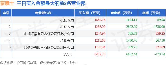 证券之星消息,沪深交易所2026年4月23日公布的交易公开信息显示,泰慕士(001234)因连续三个交易日内,涨幅偏离值累计达到20%的证券登上龙虎榜。此次是近5个交易日内第1次上榜。