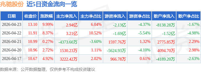 4月23日的资金流向数据方面,主力资金净流入2.94亿元,占总成交额6.04%,游资资金净流出2.13亿元,占总成交额4.37%,散户资金净流出8138.28万元,占总成交额1.67%。