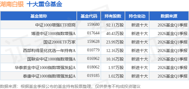 重仓湖南白银的公募基金请见下表: