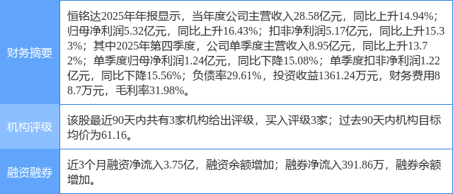 2026年4月1日,东吴证券研究员陈海进发布了对恒铭达的研报《消费电子基本盘稳固,AI与新能源打造第二成长极》,该研报对恒铭达给出“买入”评级。研报中预计公司2026-2028年营业收入将分别达到42.35/59.56/74.01亿元,归母净利润分别为7.6/9.9/11.8亿元,对应PE倍数18/13/11x。鉴于公司估值显著低于可比公司平均水平,考虑到公司在消费电子精密结构件领域深度绑定核心大客户,受益于AI算力与新能源充电桩建设迎来第二增长曲线,产能释放有望驱动业绩持续高增,维持“买入”评级。证券之星数据中心根据近三年发布的研报数据计算,该研报作者对此股的盈利预测准确度为67.2%。