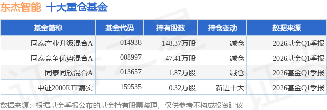 重仓东杰智能的公募基金请见下表: