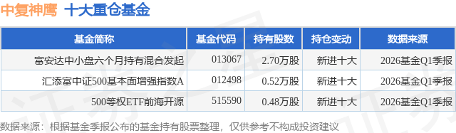 根据2026基金Q1季报公募基金重仓股数据,重仓该股的公募基金共3家,其中持有数量最多的公募基金为富安达基金的富安达中小盘六个月持有混合发起。富安达中小盘六个月持有混合发起目前规模为1.16亿元,最新净值0.8324(4月22日),较上一交易日上涨1.2%,近一年上涨34.69%。该公募基金现任基金经理为纪青。纪青在任的基金产品包括:富安达中证500指数增强A,管理时间为2019年11月19日至今,期间收益率为78.37%;富安达智优量化选股混合型发起式A,管理时间为2023年5月16日至今,期间收益率为16.89%;富安达沪深300指数增强A,管理时间为2024年11月26日至今,期间收益率为19.98%。