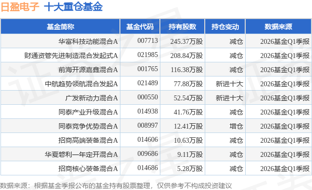 根据2026基金Q1季报公募基金重仓股数据,重仓该股的公募基金共12家,其中持有数量最多的公募基金为华富基金的华富科技动能混合A。华富科技动能混合A目前规模为8.86亿元,最新净值1.7752(4月22日),较上一交易日上涨0.4%,近一年上涨48.58%。该公募基金现任基金经理为沈成。沈成在任的基金产品包括:华富新能源股票型发起式A,管理时间为2021年12月29日至今,期间收益率为39.46%;华富产业升级灵活配置混合A,管理时间为2025年12月1日至今,期间收益率为24.18%。