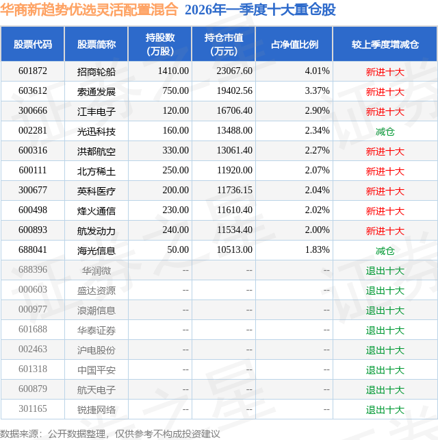 华商新趋势优选灵活配置混合的前十大重仓股如下: