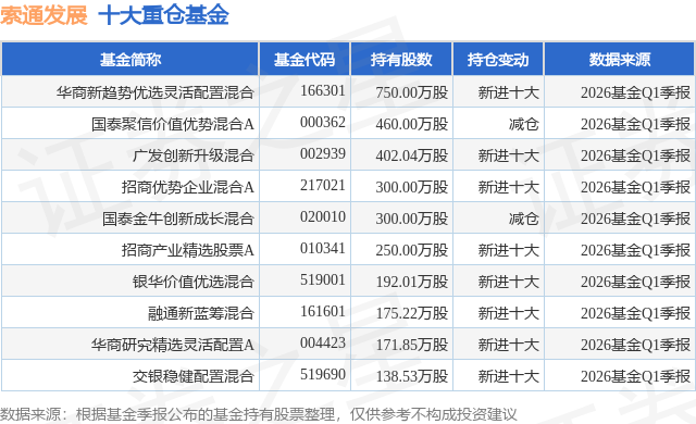 根据2026基金Q1季报公募基金重仓股数据,重仓该股的公募基金共31家,其中持有数量最多的公募基金为华商基金的华商新趋势优选灵活配置混合。华商新趋势优选灵活配置混合目前规模为57.57亿元,最新净值17.006(4月22日),较上一交易日上涨1.03%,近一年上涨68.88%。该公募基金现任基金经理为童立。童立在任的基金产品包括:华商新锐产业混合,管理时间为2016年12月23日至今,期间收益率为93.74%;华商研究精选灵活配置A,管理时间为2017年12月21日至今,期间收益率为320.84%;华商科技创新混合,管理时间为2020年3月6日至今,期间收益率为144.65%;华商研究回报一年持有混合A,管理时间为2023年3月7日至今,期间收益率为43.84%。