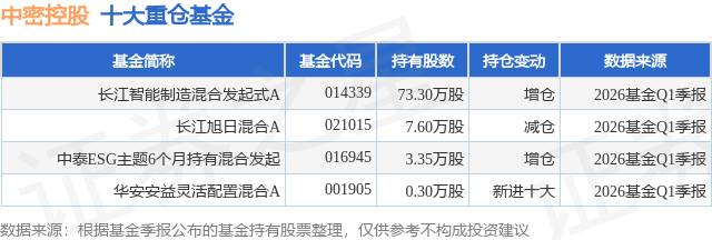 重仓中密控股的公募基金请见下表: