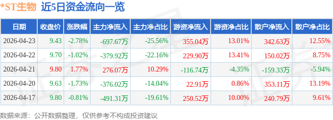 4月23日的资金流向数据方面,主力资金净流出697.67万元,占总成交额25.56%,游资资金净流入355.04万元,占总成交额13.01%,散户资金净流入342.63万元,占总成交额12.55%。