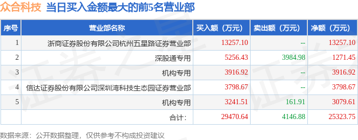 证券小知识:龙虎榜是交易所披露的竞价交易公开信息,现身龙虎榜的个股都是当日最为活跃的个股,是投资者日常重点关注的数据。交易所公布当日买入金额和卖出金额前五名的席位,其中一些席位代表特殊意义,如机构专用席位是指基金专用席位、券商自营专用席位、社保专用席位、券商理财专用席位、保险机构专用席位、保险机构租用席位、QFII专用席位等机构投资者买卖证券的专用通道和席位。深股通专用、沪股通专用为北向资金的交易席位。