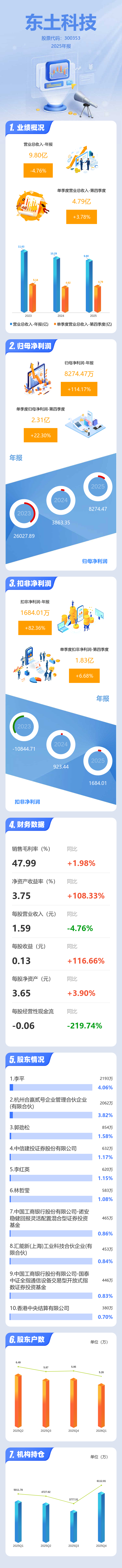 证券之星消息,东土科技2025年年报显示,当年度公司主营收入9.8亿元,同比下降4.77%;归母净利润8274.47万元,同比上升114.18%;扣非净利润1684.01万元,同比上升82.36%;其中2025年第四季度,公司单季度主营收入4.79亿元,同比上升3.78%;单季度归母净利润2.31亿元,同比上升22.3%;单季度扣非净利润1.83亿元,同比上升6.69%;负债率46.82%,投资收益338.65万元,财务费用3427.5万元,毛利率47.99%。