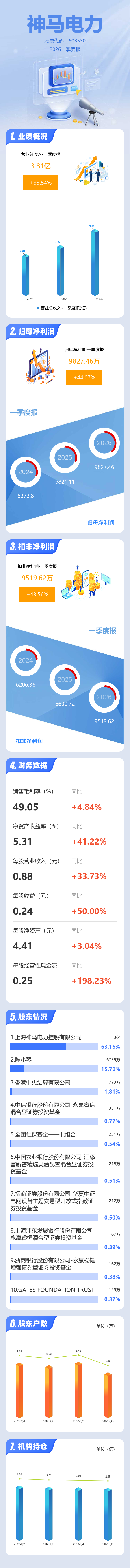 证券之星消息,神马电力2026年一季报显示,一季度公司主营收入3.81亿元,同比上升33.55%;归母净利润9827.46万元,同比上升44.07%;扣非净利润9519.62万元,同比上升43.57%;负债率28.9%,投资收益11.07万元,财务费用736.65万元,毛利率49.05%。