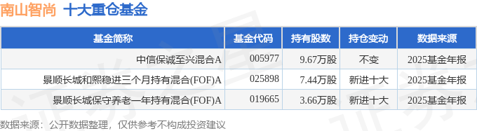 持有南山智尚最多的基金为中信保诚至兴混合A,目前规模为0.37亿元,最新净值2.7086(4月24日),较上一交易日上涨0.31%,近一年上涨103.11%。该基金现任基金经理为孙浩中 闵东旭。