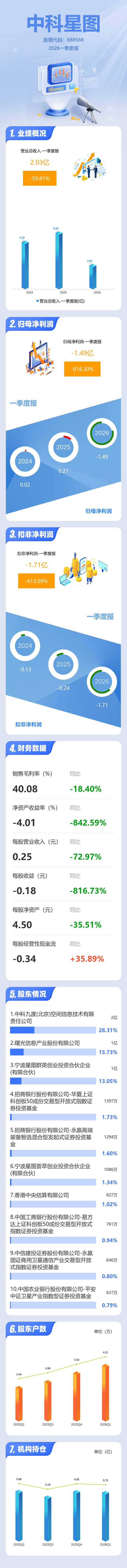证券之星消息,中科星图2026年一季报显示,一季度公司主营收入2.03亿元,同比下降59.81%;归母净利润-1.49亿元,同比下降816.31%;扣非净利润-1.71亿元,同比下降613.1%;负债率45.71%,投资收益-329.57万元,财务费用731.42万元,毛利率40.08%。