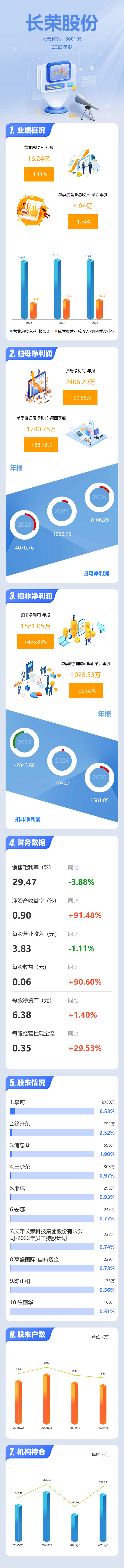 证券之星消息,长荣股份2025年年报显示,当年度公司主营收入16.24亿元,同比下降1.11%;归母净利润2406.29万元,同比上升90.86%;扣非净利润1581.05万元,同比上升465.83%;其中2025年第四季度,公司单季度主营收入4.94亿元,同比下降1.74%;单季度归母净利润1740.78万元,同比上升88.73%;单季度扣非净利润1028.53万元,同比上升22.62%;负债率54.54%,投资收益-213.95万元,财务费用5161.2万元,毛利率29.47%。
