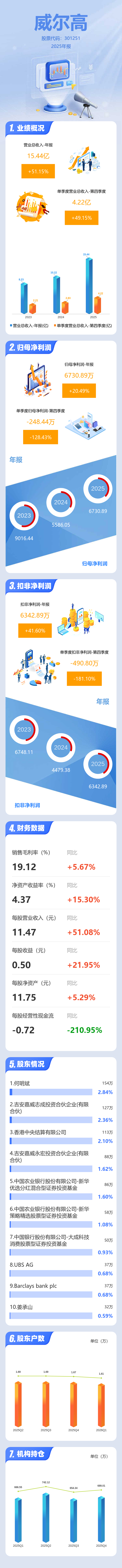 证券之星消息,威尔高2025年年报显示,当年度公司主营收入15.44亿元,同比上升51.16%;归母净利润6730.89万元,同比上升20.49%;扣非净利润6342.89万元,同比上升41.6%;其中2025年第四季度,公司单季度主营收入4.22亿元,同比上升49.15%;单季度归母净利润-248.44万元,同比下降128.44%;单季度扣非净利润-490.8万元,同比下降181.11%;负债率47.23%,投资收益195.66万元,财务费用-531.36万元,毛利率19.12%。