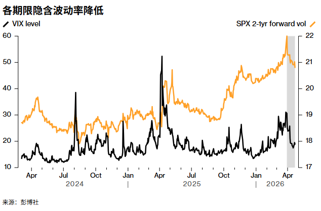 随着伊朗风险溢价下降,“重新参与对冲的条件看起来更具吸引力,”瑞银集团策略师基兰·戴蒙德在一份致客户的报告中写道。他倾向于买入股票看跌期权价差,而非在芝加哥期权交易所波动率指数(VIX)上买入看涨期权价差,并指出,即使股票接近历史高位,波动率仍获得支撑,反映了持续的不确定性。
