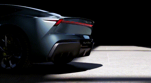 不仅是这个超级低趴的造型和剪刀门,还可以看到这个屁股做的非常夸张,超大的环形尾灯,且有很多大尺寸的空气动力学套件。