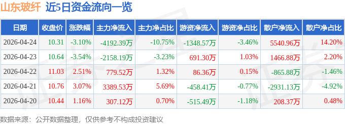 4月24日的资金流向数据方面,主力资金净流出4192.39万元,占总成交额10.75%,游资资金净流出1348.57万元,占总成交额3.46%,散户资金净流入5540.96万元,占总成交额14.2%。