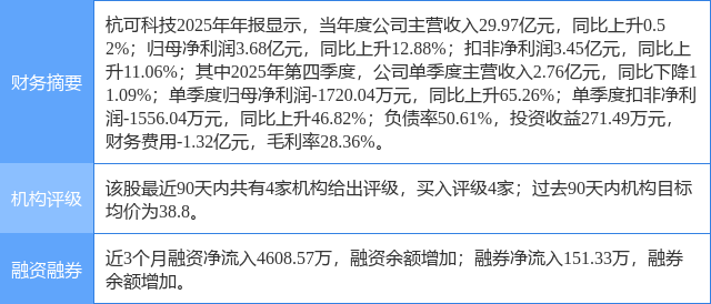 今日杭可科技(688006)涨5.17%,收盘报31.71元。