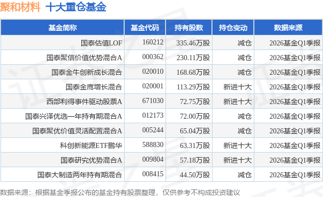 根据2026基金Q1季报公募基金重仓股数据,重仓该股的公募基金共38家,其中持有数量最多的公募基金为国泰基金的国泰估值LOF。国泰估值LOF目前规模为17.63亿元,最新净值4.323(4月24日),较上一交易日上涨0.25%,近一年上涨37.08%。该公募基金现任基金经理为王兆祥。王兆祥在任的基金产品包括:国泰产业升级混合发起A,管理时间为2025年12月25日至今,期间收益率为9.2%;国泰研究精选两年持有混合,管理时间为2026年4月8日至今,期间收益率为8.81%;国泰金鹰增长混合,管理时间为2026年4月8日至今,期间收益率为9.66%。
