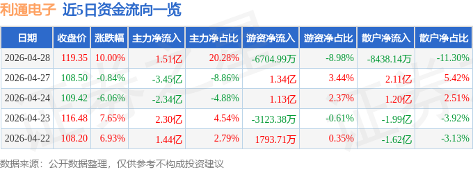 4月28日的资金流向数据方面,主力资金净流入1.51亿元,占总成交额20.28%,游资资金净流出6704.99万元,占总成交额8.98%,散户资金净流出8438.14万元,占总成交额11.3%。