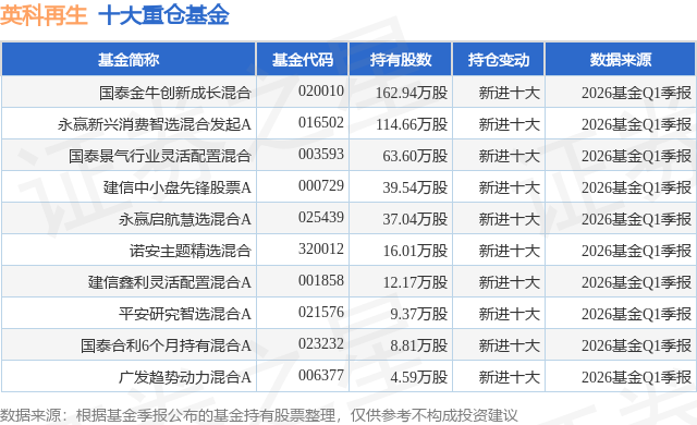 重仓英科再生的前十大公募基金请见下表: