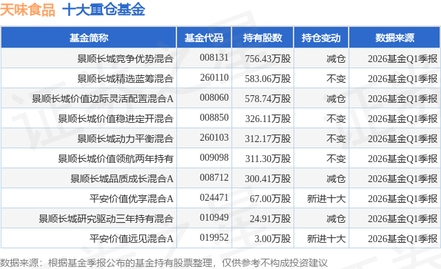 重仓天味食品的前十大公募基金请见下表: