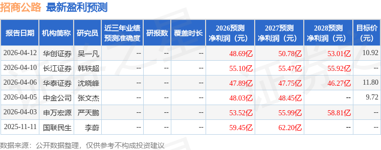 招商公路(001965) 2026年4月24日,招商公路发布2026年一季度报告。2026Q1公司实现营业收入35.6亿元,同比增长26.9%;实现归母净利润13.5亿元,同比增长1.5%。 经营分析 Q1营业收入及成本增长,投资收益对冲短期波动。2026Q1公司营业收入同比增长26.9%,营业成本同比增长48.1%,主要是京津塘改扩建项目影响。公司Q1毛利同比下滑10%,主要或由于春节假期可收费天数减少、改扩建项目的施工对车流量产生影响等。公司Q1实现投资收益12.48亿元,占利润总额超七成,有效对冲了单一项目改扩建带来的短期波动。2025年公司在公路投资并购方面持续优化,增持深高速、越秀交通基建,并增资广靖锡澄高速。毛利率同比下滑,费用率同比下降。1Q2026公司实现毛利率25.9%,同比下滑10.6pct。费用率方面,1Q2026公司期间费用率为15.7%,同比下降4.68pct,其中销售费用率为0.44%,同比下降0.64pct,主要由于本期交通科技相关业务销售费用减少;管理费用率为4.73%,同比下降0.69pct;研发费用率为0.99%,同比下降0.03pct;财务费用率为9.50%,同比下降3.32pct,主要或由于债务利率结构优化。公司信用减值损失为+2483万元,同比增长228.44%,主要是本期销售回款转回信用减值损失增加。公司归母净利率为37.9%,同比下降9.49pct。 高股息基石稳固,获得储架发行100亿元债券资格。稳定的投资收益是公司维持高股息政策的基石。2025年拟派发每股股利0.37元,按照4月24日收盘价计算股息率达4.0%。根据公司公告,公司符合储架发行公司债券条件,发行规模为不超过人民币100亿元。公司拟将发行的募集资金全部用于生产性支出,包括补充流动资金、偿还有息债务、并购公路相关路产项目及适用的法律法规允许的其他用途。 盈利预测、估值与评级 考虑到公司改扩建影响,下调公司2026-2027年归母净利润预测为48.2亿元、48.9亿元,新增2028年归母净利润预测50.4亿元。维持“买入”评级。 风险提示 改扩建进度不及预期、高速收费政策变化、投资收益缩减风险、REITs发行不及预期风险。