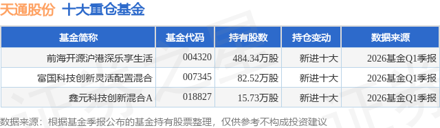 重仓天通股份的公募基金请见下表: