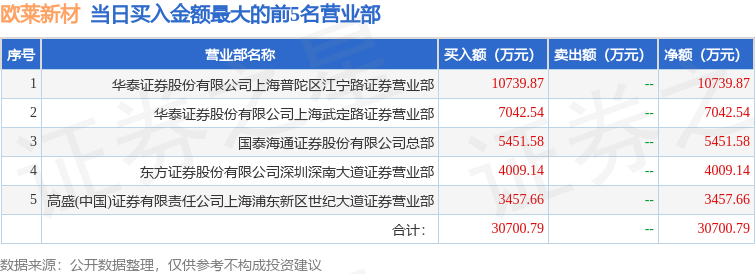 证券小知识:龙虎榜是交易所披露的竞价交易公开信息,现身龙虎榜的个股都是当日最为活跃的个股,是投资者日常重点关注的数据。交易所公布当日买入金额和卖出金额前五名的席位,其中一些席位代表特殊意义,如机构专用席位是指基金专用席位、券商自营专用席位、社保专用席位、券商理财专用席位、保险机构专用席位、保险机构租用席位、QFII专用席位等机构投资者买卖证券的专用通道和席位。深股通专用、沪股通专用为北向资金的交易席位。