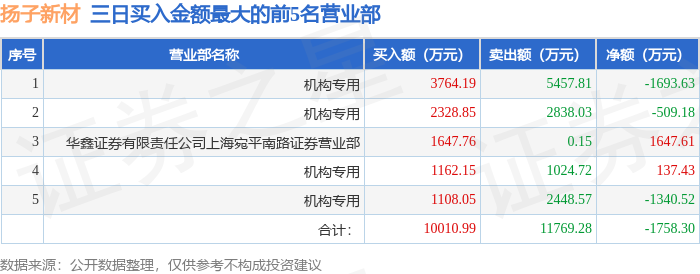 证券之星消息,沪深交易所2026年4月28日公布的交易公开信息显示,扬子新材(002652)因连续三个交易日内,涨幅偏离值累计达到20%的证券登上龙虎榜。此次是近5个交易日内第1次上榜。