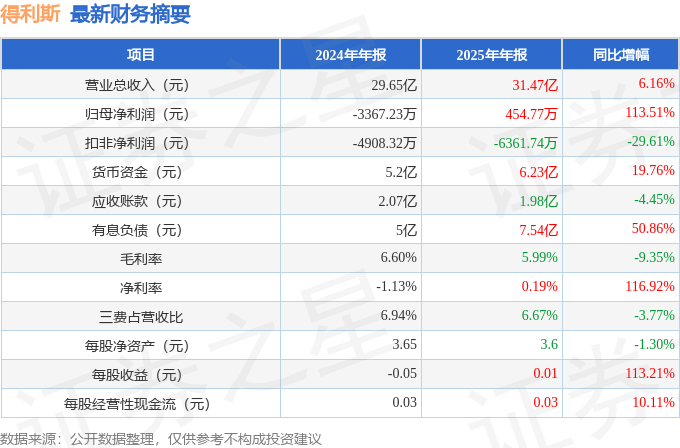 据证券之星公开数据整理,近期得利斯(002330)发布2025年年报。截至本报告期末,公司营业总收入31.47亿元,同比上升6.16%,归母净利润454.77万元,同比上升113.51%。按单季度数据看,第四季度营业总收入7.54亿元,同比下降14.57%,第四季度归母净利润-85.61万元,同比上升97.88%。本报告期得利斯公司应收账款体量较大,当期应收账款占最新年报归母净利润比达4350.75%。