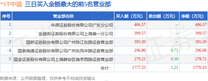 证券之星消息,沪深交易所2026年4月27日公布的交易公开信息显示,*ST中迪(000609)因连续三个交易日内,涨幅偏离值累计达到12%的ST证券、*ST证券和未完成股改证券登上龙虎榜。此次是近5个交易日内第1次上榜。