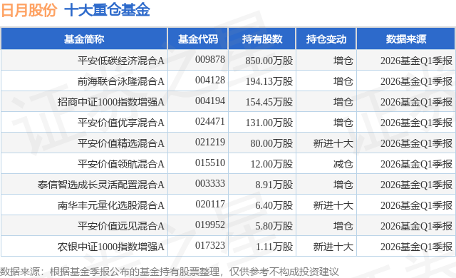 重仓日月股份的前十大公募基金请见下表: