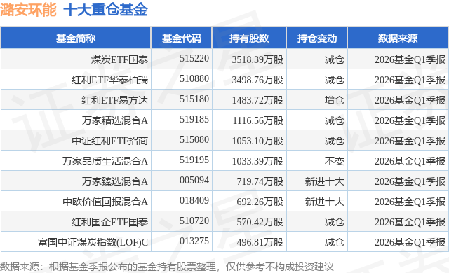 重仓潞安环能的前十大公募基金请见下表: