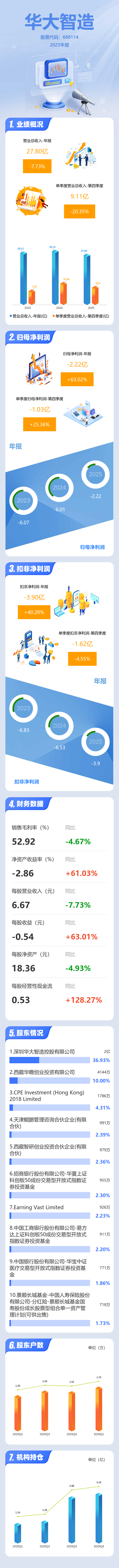 证券之星消息,华大智造2025年年报显示,当年度公司主营收入27.8亿元,同比下降7.73%;归母净利润-2.22亿元,同比上升63.03%;扣非净利润-3.9亿元,同比上升40.2%;其中2025年第四季度,公司单季度主营收入9.11亿元,同比下降20.36%;单季度归母净利润-1.03亿元,同比上升25.36%;单季度扣非净利润-1.62亿元,同比下降4.55%;负债率27.0%,投资收益1754.54万元,财务费用-6703.85万元,毛利率52.92%。