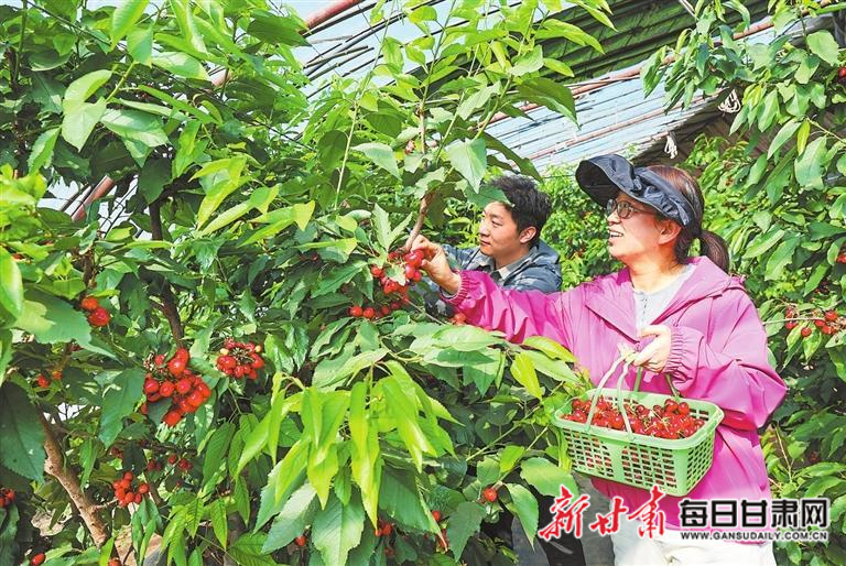 近日,临泽县板桥镇温室樱桃成熟,吸引市民前来采摘。新甘肃·甘肃日报记者 田蹊
