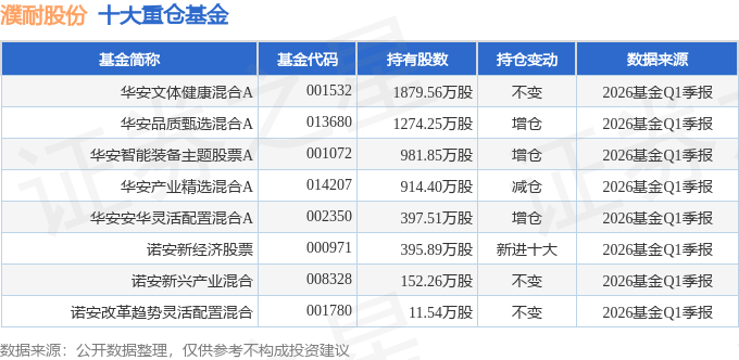 持有濮耐股份最多的基金为华安文体健康混合A,目前规模为20.49亿元,最新净值5.337(4月24日),较上一交易日下跌2.7%,近一年上涨71.62%。该基金现任基金经理为刘畅畅 桑翔宇。