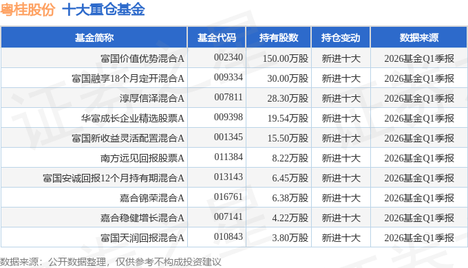 持有粤桂股份最多的基金为富国价值优势混合A,目前规模为10.41亿元,最新净值3.9071(4月24日),较上一交易日上涨0.66%,近一年上涨41.7%。该基金现任基金经理为孙彬。