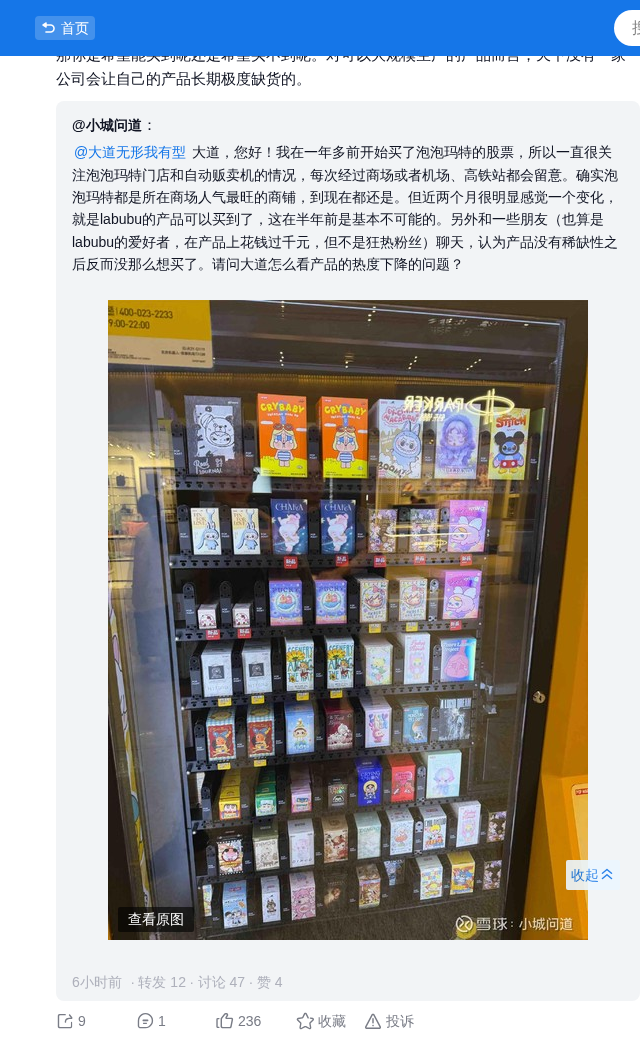 @大道无形我有型 大道,您好!我在一年多前开始买了泡泡玛特的股票,所以一直很关注泡泡玛特门店和自动贩卖机的情况,每次经过商场或者机场、高铁站都会留意。确实泡泡玛特都是所在商场人气最旺的商铺,到现在都还是。但近两个月很明显感觉一个变化,就是labubu的产品可以买到了,这在半年前是基本不可能的。另外和一些朋友(也算是labubu的爱好者,在产品上花钱过千元,但不是狂热粉丝)聊天,认为产品没有稀缺性之后反而没那么想买了。请问大道怎么看产品的热度下降的问题?