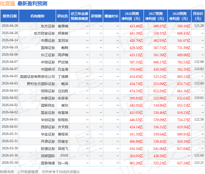东吴证券股份有限公司曾朵红,阮巧燕,黄细里近期对比亚迪进行研究并发布了研究报告《2026一季报点评:出海需求持续高增,闪充技术开启新周期》,给予比亚迪买入评级。