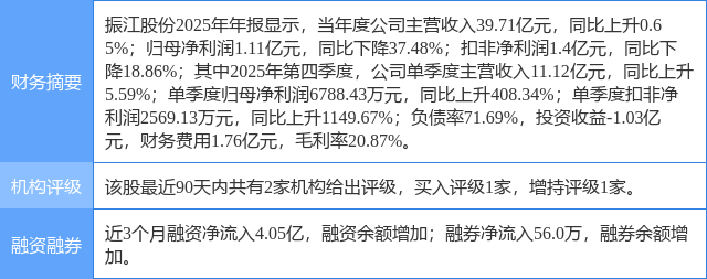 2026年4月7日,华鑫证券研究员臧天律,任春阳,张涵,傅鸿浩发布了对振江股份的研报《公司事件点评报告:Q4业绩改善,定增加码欧洲海风发展》,该研报对振江股份给出“买入”评级。研报中预测公司2026-2028年收入分别为48.45、59.41、73.24亿元,EPS分别为1.62、2.40、3.47元,当前股价对应PE分别为25.0、16.9、11.7倍,首次覆盖,给予“买入”投资评级。证券之星数据中心根据近三年发布的研报数据计算,该研报作者对此股的盈利预测准确度为5.88%。