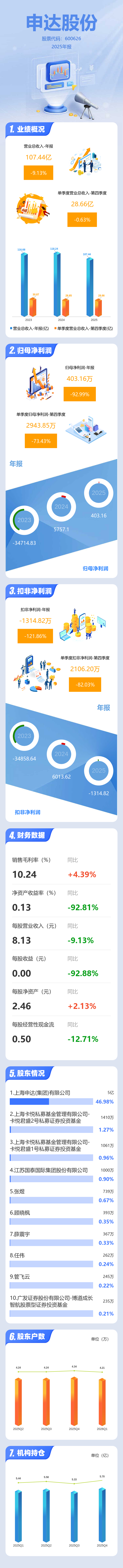 证券之星消息,申达股份2025年年报显示,当年度公司主营收入107.44亿元,同比下降9.14%;归母净利润403.16万元,同比下降93.0%;扣非净利润-1314.82万元,同比下降121.86%;其中2025年第四季度,公司单季度主营收入28.66亿元,同比下降0.64%;单季度归母净利润2943.85万元,同比下降73.43%;单季度扣非净利润2106.2万元,同比下降82.03%;负债率64.59%,投资收益1.28亿元,财务费用2.76亿元,毛利率10.24%。
