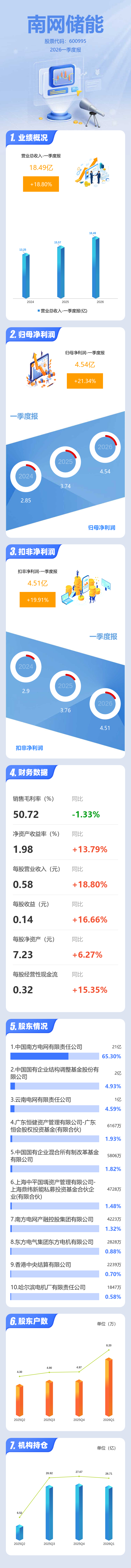 证券之星消息,南网储能2026年一季报显示,一季度公司主营收入18.49亿元,同比上升18.8%;归母净利润4.54亿元,同比上升21.34%;扣非净利润4.51亿元,同比上升19.92%;负债率52.79%,投资收益1539.25万元,财务费用1.2亿元,毛利率50.72%。