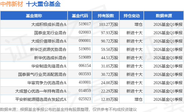 重仓中伟新材的前十大公募基金请见下表: