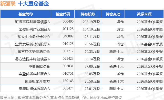 重仓新强联的前十大公募基金请见下表:
