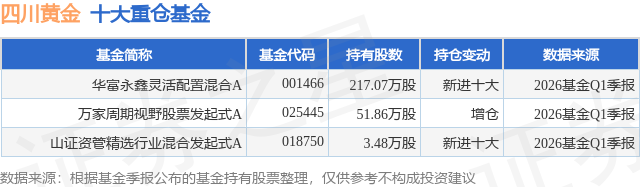 根据2026基金Q1季报公募基金重仓股数据,重仓该股的公募基金共3家,其中持有数量最多的公募基金为华富基金的华富永鑫灵活配置混合A。华富永鑫灵活配置混合A目前规模为2.38亿元,最新净值1.9966(4月28日),较上一交易日下跌2.41%,近一年上涨67.15%。该公募基金现任基金经理为李孝华。李孝华在任的基金产品包括:华富中证A100ETF联接A,管理时间为2021年5月7日至今,期间收益率为6.04%;证券先锋ETF华富,管理时间为2021年6月28日至今,期间收益率为0.07%;稀有金属ETF华富,管理时间为2021年8月11日至今,期间收益率为19.3%;华富中小企业100指数增强,管理时间为2021年11月17日至今,期间收益率为-3.26%。