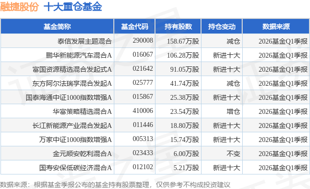重仓融捷股份的前十大公募基金请见下表: