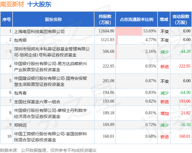 根据南亚新材2026年一季报公布的十大股东详情如下: